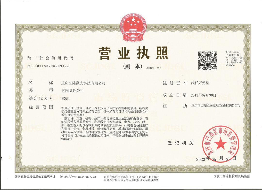 公司由重慶大江工業(yè)有限責任公司和沈陽大陸激光集團有限公司共同出資設立,依托股東擁有自主知識產(chǎn)權(quán)的大功率工業(yè)激光加工設備、材料和工藝技術(shù),研制、生產(chǎn)、銷售適應各種作業(yè)環(huán)境的激光熔覆雙金屬及多金屬梯度功能高端專用油缸,并圍繞冶金、電力、石化、汽車制造等行業(yè),為用戶提供大型設備耐磨、耐腐蝕、耐高溫高值零部件的激光熔覆再制造服務,以及拉延模具表面激光相變硬化技術(shù)服務。